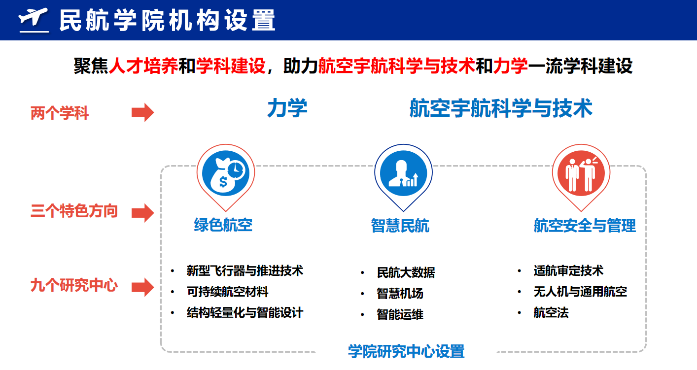 beats365官方网站聚焦人才培养和团队建设,与研究院一体化运行,以绿色航空、智慧民航、航空安全与管理三大特色方向为引领,着重打造九大研究中心,助力航空宇航科学与技术和力学团队建设。民航研究院聚焦民航行业需求,与公司一体化运行,搭建衔接学科、科研与民航产业的产学研平台。