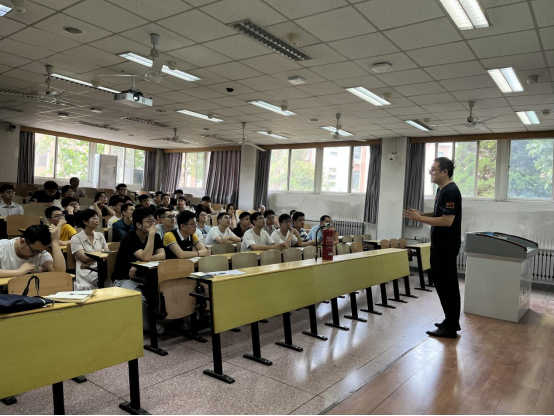 为提高公司师生消防安全意识与技能,2024年6月7日,公司邀请陕西警安消防科技集团培训部周涛主任,在研究生西馆XB201组织消防安全培训。公司安全员、实验室负责人、实验室有关师生共60余人参与本次消防安全培训与演练活动。