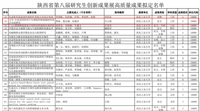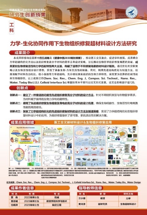 近日,由陕西省教育厅、陕西省学位委员会主办的陕西省第八届研究生创新成果展落下帷幕。beats365官方网站2022级博士研究生贾犇负责的“力学-生化协同作用下生物组织修复超材料设计方法研究”(指导教师:万小朋、黄河源)获得省级A类奖项(全校仅六项,全省57项)。本次获奖是公司学子首次参与陕西省研究生创新高质量成果展并取得的新突破!