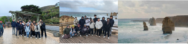 学习张弛有度,在周末,我们在墨尔本大学的安排下乘车来到了美丽的大洋路。呼吸着新鲜的海风,团队欣赏沿途的风光,在5分钟的时间内,体会了阴天-晴天-冰雹天的迅速更替,在兴奋与激动中大声高歌自由的天籁之音。