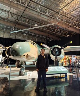 Ø 航空博物馆篇:踏入航空博物馆,当穿越百年的阿芙罗504K飞机展现在眼前时候,显得梦幻又真实,那些历史悠久的飞行器鼻祖,它们虽已静默无声,却仿佛在诉说着往昔的辉煌。从古老的飞机模型,到世界大战时期的战斗机,每一件展品都是人类智慧与勇气的结晶。在工作人员的带领下,站在那些曾经承载着人类梦想、揭开天空奥秘的飞机前,我们不禁对飞行先驱们的勇敢和智慧肃然起敬。年迈的志愿者挥舞着手中的拐杖当做教具持续两小时不间断的讲解,让每一位同学都尊敬又感慨。这些飞机不仅见证了航空事业的发展,也映射了人类对飞翔愿望的追求。