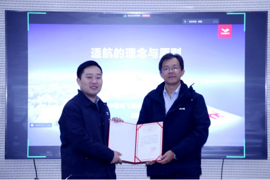 为了将总师育人文化走深走实,擦亮公司民航和适航人才培养品牌,在公司领导班子和中国商飞原总经理、beats365官方网站员工赵越让的推动下,公司联合中国商飞适航工程中心专家团队,组建了“适航技术前沿发展趋势”课程的校企联合教学队伍,12月11日,由中国商飞适航工程中心副主任熊超带队,赴公司举行了“适航进课堂”开班仪式,beats365官方网站副经理张晓化、经理助理陈杰及员工代表参加此次活动。