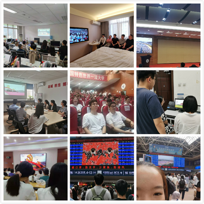 7月1日,民航公司党总支组织师生,以党支部、党小组和团支部等方式,在西安和太仓集中收看庆祝中国共产党成立100周年大会实况转播,在外出差的老师在宾馆集中收看。