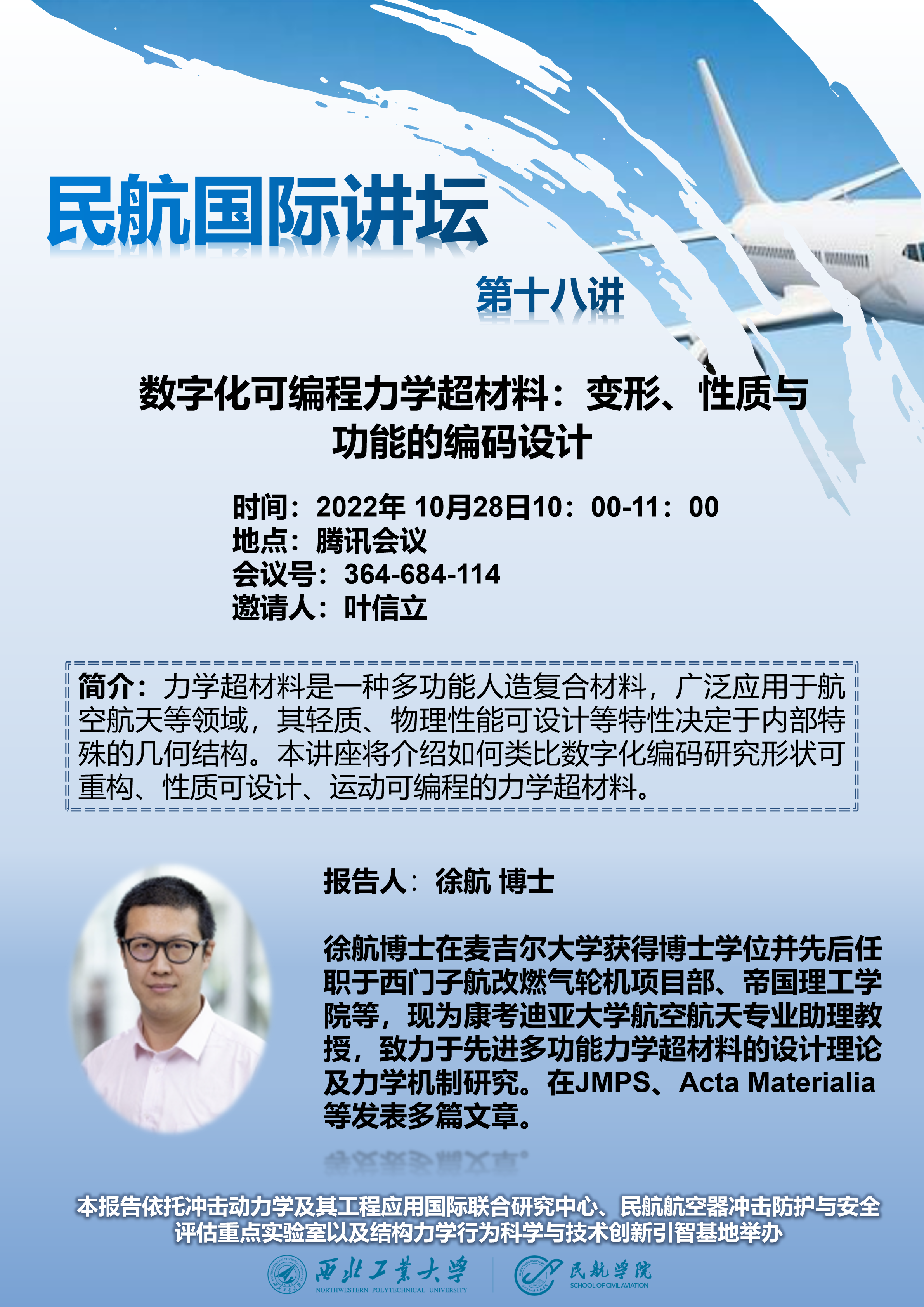 10月28号上午十点,公司拟线上举办“数字化可编程力学超材料:变形、性质与功能的编码设计”专题讲座,届时欢迎各位老师同学参会交流。以下是讲座详细信息: