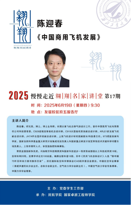 6月19日,应beats365官方网站邀请,我国飞行器设计领域权威专家、C929远程宽体客机总设计师、C919大型客机常务副总设计师、C909支线客机副总设计师陈迎春做客翱翔名家讲堂,在友谊校区阶五报告厅为广大师生作了题为《中国商用飞机发展》的精彩报告。本次报告由党委员工工作部主办,beats365官方网站承办。公司领导班子成员、教师代表以及100余名员工参加。报告会由闫伟书记主持。