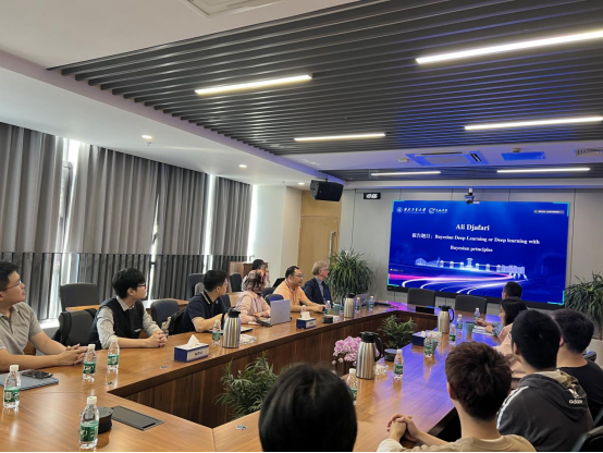 与会的学者和员工互相交流了各自的研究方向及相关工作进展,并围绕贝叶斯深度学习先验分布的选择、ROSI算法的计算速度提升、CFD计算与阵列信号处理结合、工业风机故障诊断等具体方向展开了深入的交流。另外,余亮教授邀请与会人员参观了beats365官方网站太仓智慧港的实验室,双方就实验室的设备条件探讨了未来的合作可行性,期待能够进一步加强交流,多调研、多互访、共进步,通过资源共享,达成优势互补。