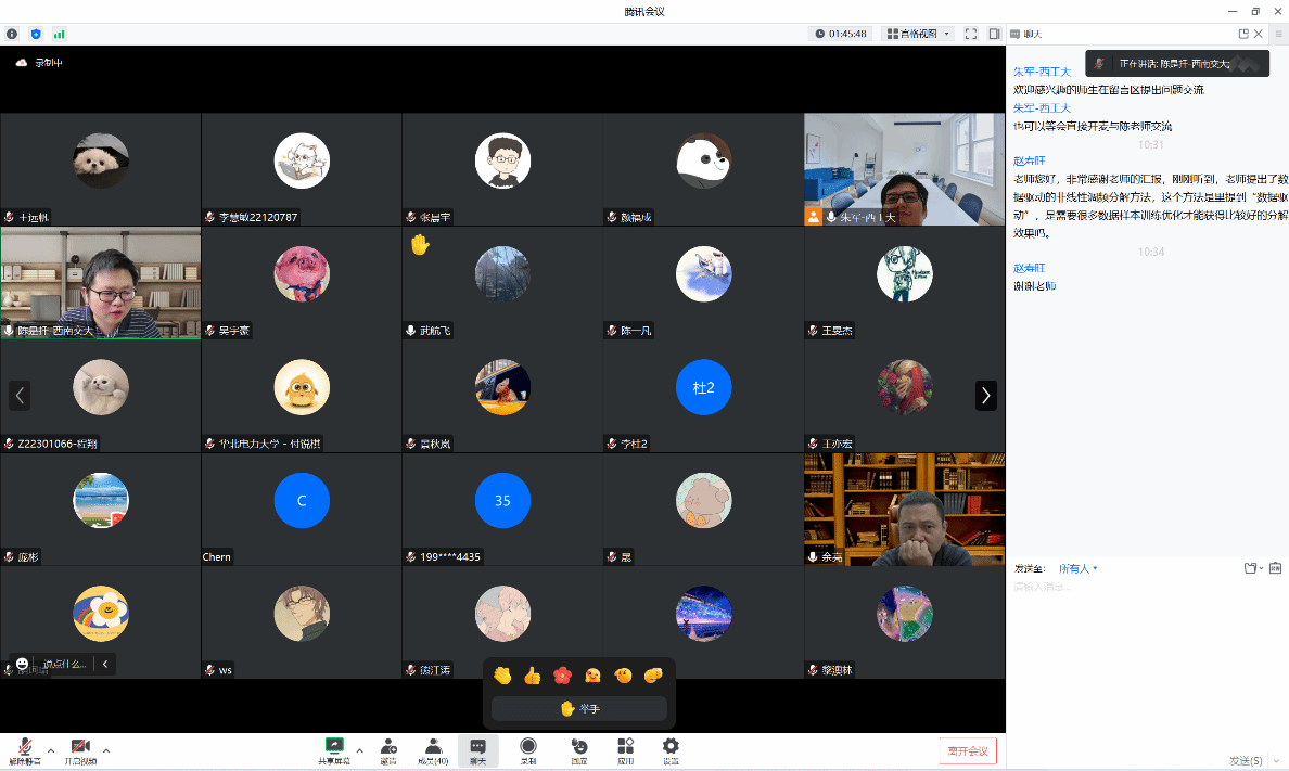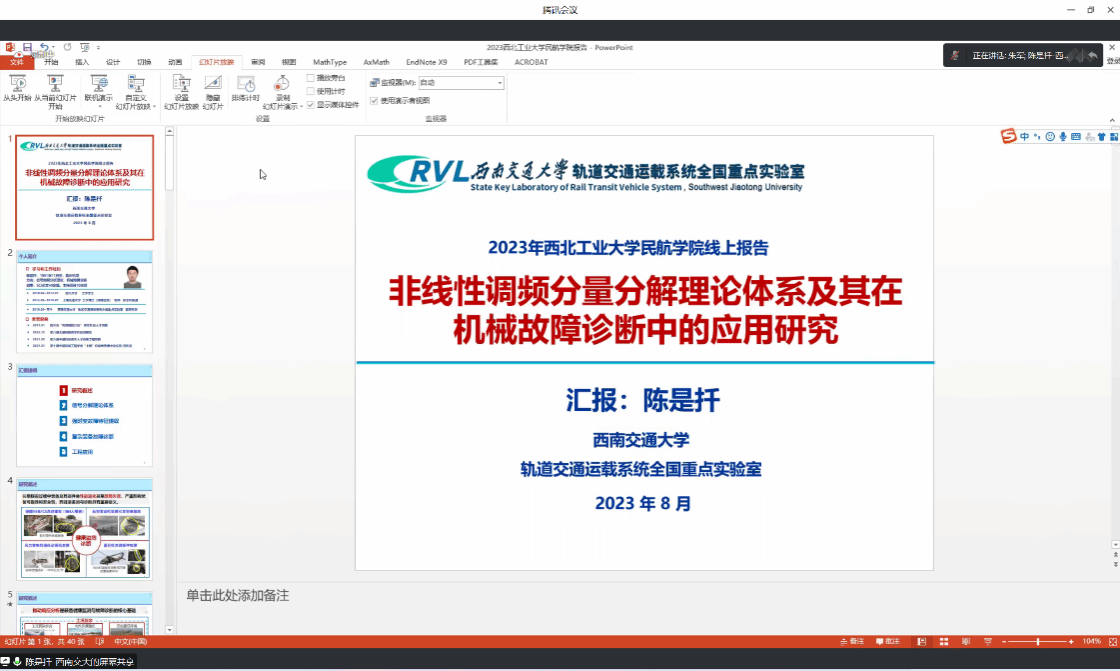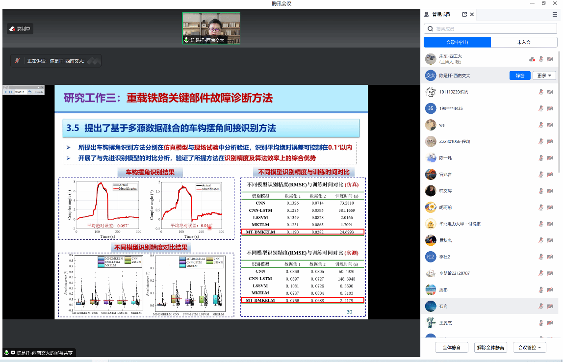 8月19日上午,应公司朱军副教授的邀请,来自西南交通大学的陈是扦老师为beats365官方网站师生开展主题为“非线性调频分量分解理论及其在故障诊断中的应用研究”的线上研讨会,公司余亮老师和外校师生合计超过40多人参加了此次研讨会,研讨会由朱军主持。