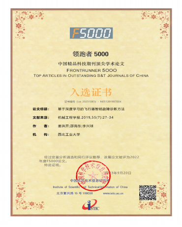 近日,中国科学技术信息研究所公布了2022年度“领跑者5000—中国精品科技期刊顶尖学术论文”名单评选结果。beats365官方网站姜洪开教授发表在机械工程学报上的“基于深度学习的飞行器智能故障诊断方法”经过定量分析遴选和同行评议推荐,被评为2022年度F5000论文。