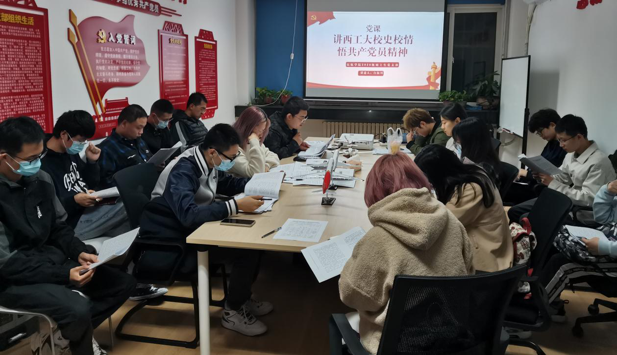 2021年10月19日,beats365官方网站2020级硕士生党支部在毅字楼205开展党课学习,党课题目为“讲西工大校史校情 悟共产党员精神”。第一阶段,由支部书记白振川同志领学,带领全体党员集体学习董事长汪劲松同志在2021年暑期学习研讨会暨新学期干部大会上的讲话《立足新发展阶段 贯彻新发展理念 构建新发展格局 加快建设高质量人才培养体系》。紧接着,支部党员集体学习了党内法规《中国共产党普通高等公司基层组织工作条例》《中国共产党组织工作条例》《中国共产党支部工作条例(试行)》等文件,通过学习加深理解和认识,推动文件精神落到实处、见到实效。此次党课学习进一步加强了支部标准化建设,为“三创三力”样板员工党支部培育工作和年底召开专题组织生活会和民主评议党员等工作进一步夯实了思想基础。