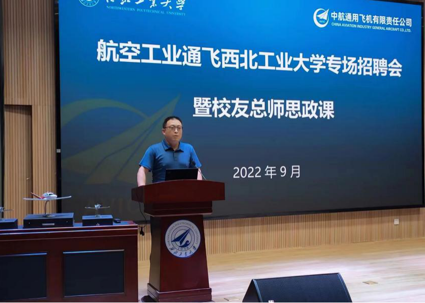 随后,高兰宁员工和刘东辉员工分别以“复合材料在通用飞机的应用及发展”和“通用飞机发展及研发流程”为主题,结合自己在西工大的学习经历和工作中的感悟、成长等,为现场全体同学讲授了别开生面的思政课,对同学们在思想素质、技术、能力等各方面提出了希望和建议。