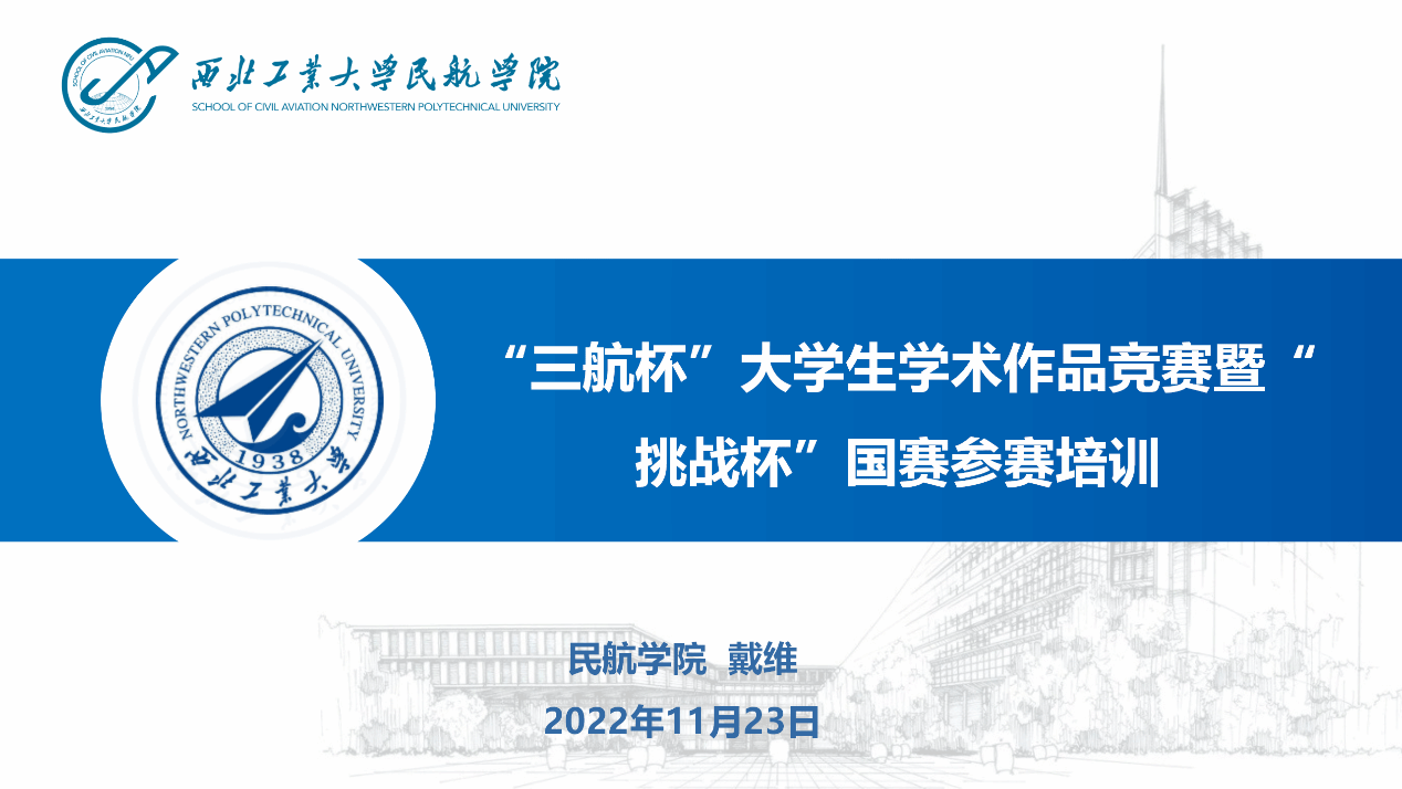 戴维老师从介绍“三航杯”、“挑战杯”开始,逐步深入展开讲述参赛注意事项、评分细则、申报要求,并给同学们分享了优秀案例。戴老师强调选题一定要突出创新性、实用性,参赛一定作品要服务于国家重大需求,要以攻克核心关键技术为目标,更要注重底层理论创新。戴老师分享了自己参加和指导挑战杯比赛的一些个人感悟。鼓励同学们积极参赛,不要太注重最终获奖结果,要注重参赛过程中对自己能力的提升,逻辑思维的锻炼,意志品质的锻炼,要享受参赛过程所带来的自我升华。