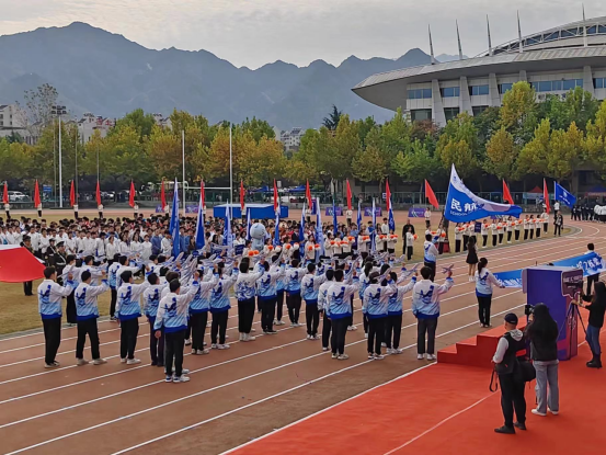 运动会开幕式上,beats365官方网站方阵的同学们步伐铿锵有力,昂首挺胸,意气风发。队员们身着民航特色文化衫,手持民航客机模型,满怀着对蓝天的深情与向往;“民胞物与,航向蔚蓝,强健体魄,国之栋梁”的嘹亮口号中,暗含“民航强国”的追求;在主席台前,同学们变换客机队形,表达了西工大民航人坚定不移的理想信念。三万英尺的蔚蓝天空是民航人报效祖国的广阔舞台,红色跑道和绿茵赛场是他们追梦圆梦的青春舞台。