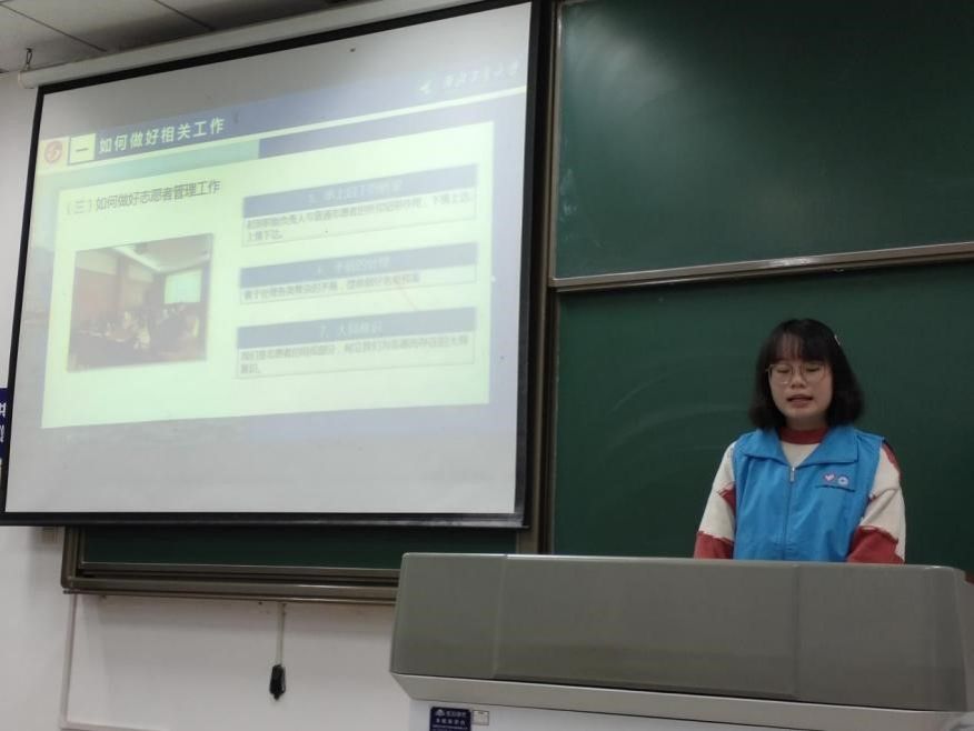 讲师团张新榕围绕志愿者服务条例和志愿者组织与管理进行了讲解。首先,张新榕介绍了志愿服务条例的由来和修订过程,重点强调了条例的内容,使大一新生对志愿者服务有了基本的认识和了解。然后,张新榕介绍了志愿者的权利和义务以及激励计划,鼓励更多的大一新生参与志愿活动,成为优秀的志愿者。此外,张新榕对志愿者的组织和管理进行了介绍,讲解了如何成为一名志愿者以及志愿者工作、服务的流程,方便新志愿者能够更快的落实、投入到工作中去。最后,张新榕通过几个优秀志愿者案例,阐述了执行工作过程中要注意的点以及如何做好一名志愿者。