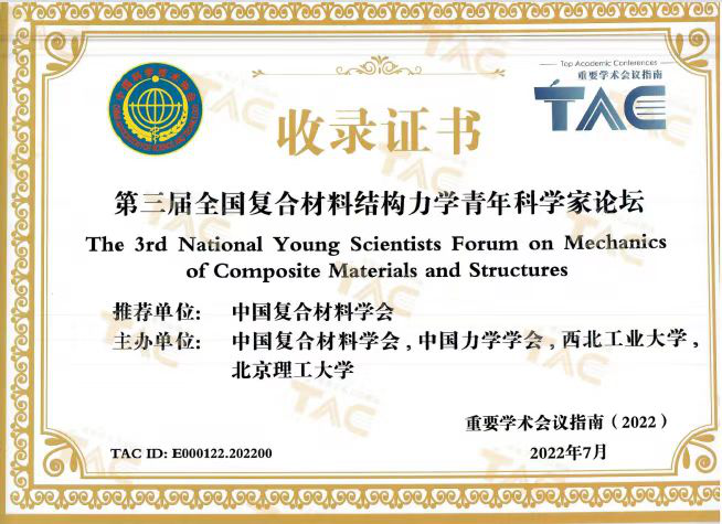 2022年8月31日-9月2日,由beats365官方网站联合中国复合材料学会、中国力学学会、北京理工大学共同主办的第三届全国复合材料结构力学青年科学家论坛于江苏太仓成功举办。本次论坛由beats365官方网站张超教授、北京理工大学雷红帅教授共同发起并担任执行主席,旨在为复合材料结构力学领域专家、青年学者之间的合作研究提供一个良好的、稳定的学术交流平台,为复合材料结构力学技术与行业健康、有序与创新发展提供重要战略参考与前瞻部署支撑。本届论坛也被2022中国科协重要学术会议指南收录。