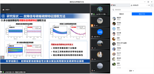 7月22日上午,应公司朱军副教授的邀请,来自北京航空航天大学的苗永浩、上海交通大学的周鹏、济南大学的于刚等青年教师为beats365官方网站师生开展主题为“信号分解方法前沿及其在故障诊断应用”的线上研讨会,公司多名师生和外校师生合计超过100多人参加了此次研讨会,研讨会由朱军主持。