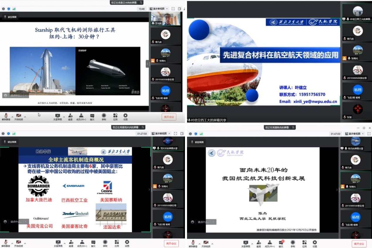 为丰富本科生疫情期间的文化生活,拓展员工视野,激发学习热情,beats365官方网站于2022年1月4日14:00,在腾讯会议线上举办了本科生系列讲座第一讲,近 200名本科生线上参加了讲座。“民用航空发动机设计理念与技术发展”、“先进复合材料在航空航天领域的应用”、“大飞机总体技术发展”、“航空航天未来二十年发展”先后由王光秋教授,叶信立副教授,党庆庆助理教授以及陈杰副教授主讲,公司教学副经理张晓化主持。